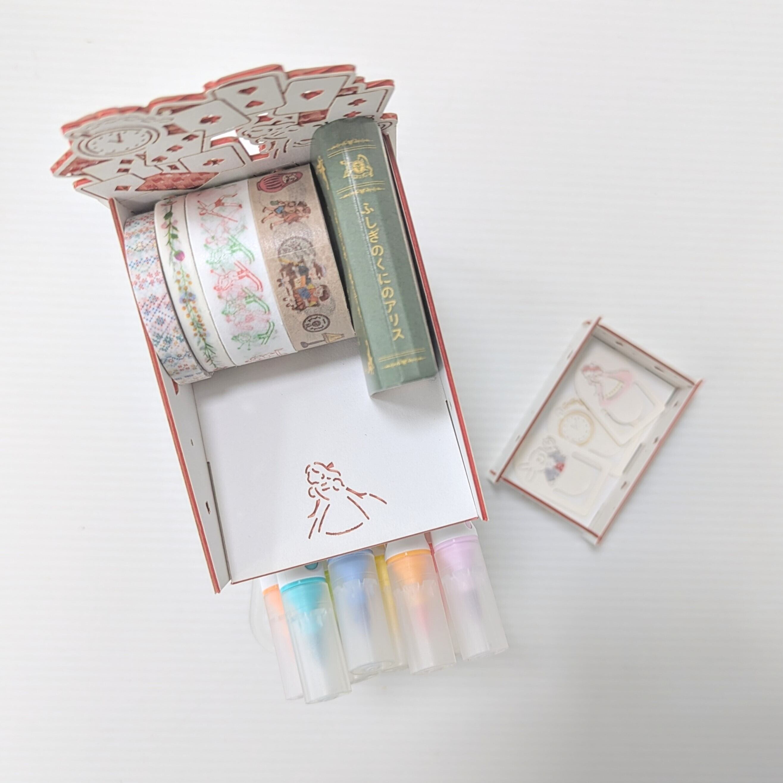 童話「ふしぎのくにのアリス」の世界をモチーフにした小物入れ。